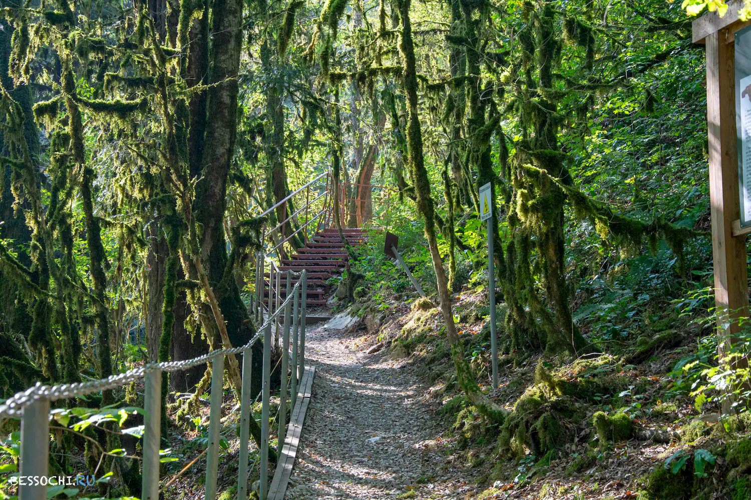 Роща – это лес, никогда не знавший топора, созданный самой природой ботанический сад, где более четырехсот видов растений. Тропические грибы-цветы и удивительные орхидеи, гигантские разломы и отвесные 100-метровые скалы над бирюзово-синей горной рекой ждут истинных ценителей приключений. В Роще три маршрута: Большое кольцо (5 км), Малое кольцо (1, 6 км) и тропа «В глубь веков» (800 м). Благодаря субтропическому климату, гулять там можно круглый год и весь день, – маршруты удобно стыкуются и переходят друг в друга.