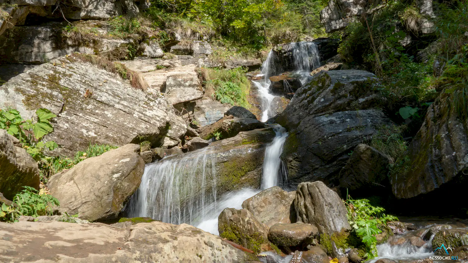 Парк водопадов Менделиха на Роза Хутор.